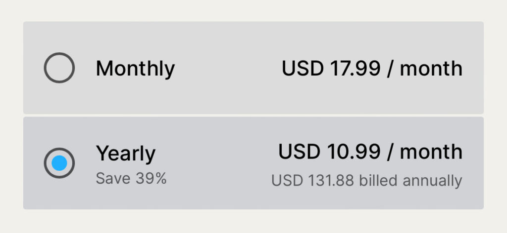 An Epidemic Sound Subscription costs $10.99 a month(annual plan) on the personal plan, which allows you to monetise 1 channel. With this, you get unlimited downloads and access to the app. Login to your Epidemic Sound account to start an active subscription. Save money by signing up to an annual subscription plan.
